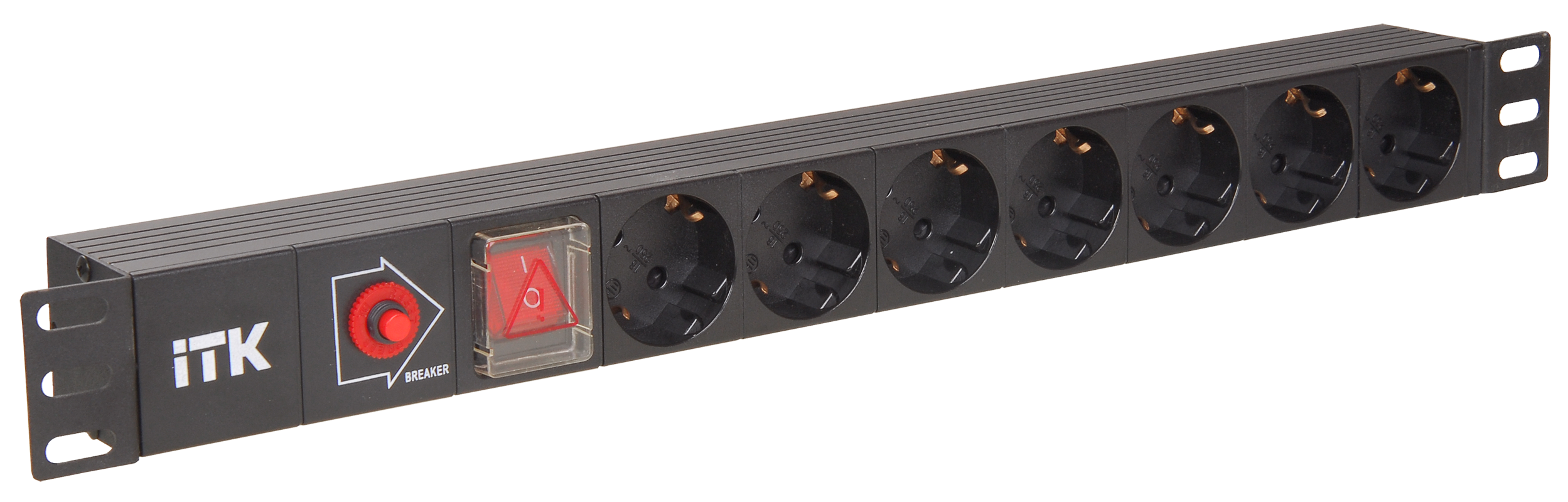 ITK PDU 7 розеток нем. стандарт, с LED выключателем и защитой от перенапряжения, без шнура, вх. C14, алюминиевый профиль