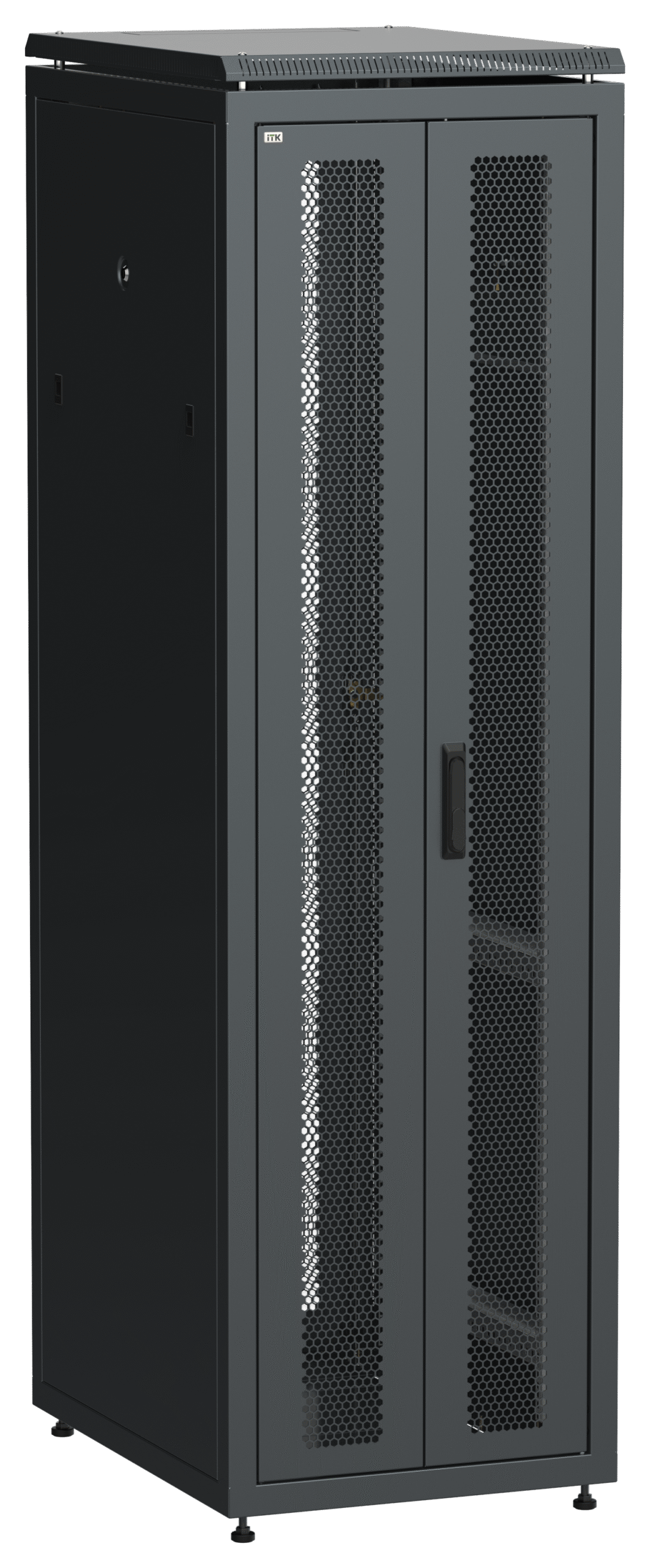ITK Шкаф сетевой 19″ 42U 600х800мм двери передняя двустворчатая перфорированная задняя перфорированная черный